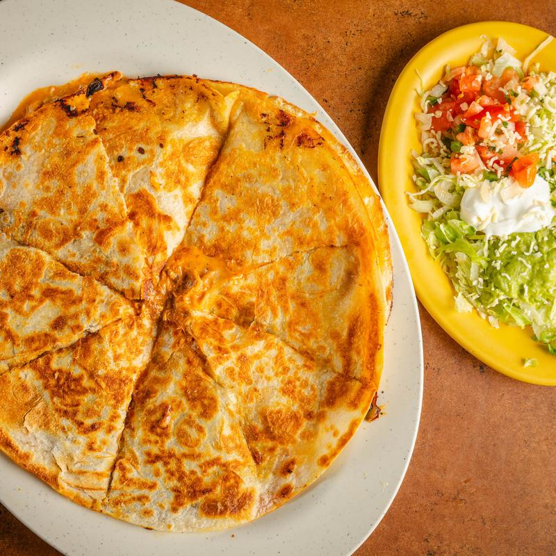 Two flour tortillas stuffed with cheese and spinach. Served with lettuce, guacamole, sour cream, and pico de gallo